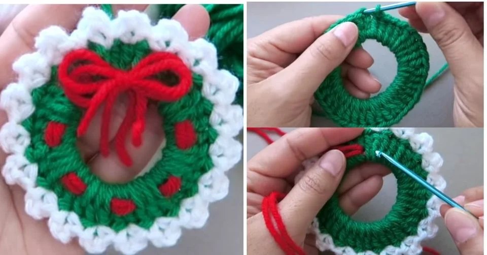 Next, it’s time to add details that bring your wreath to life. Using smaller hooks and leftover yarn, crochet tiny decorations like holly leaves, berries, or bows. The How to Crochet Christmas Wreath – Free Tutorial encourages creativity, so you can make little stars, snowflakes, or even mini candy canes to attach later.